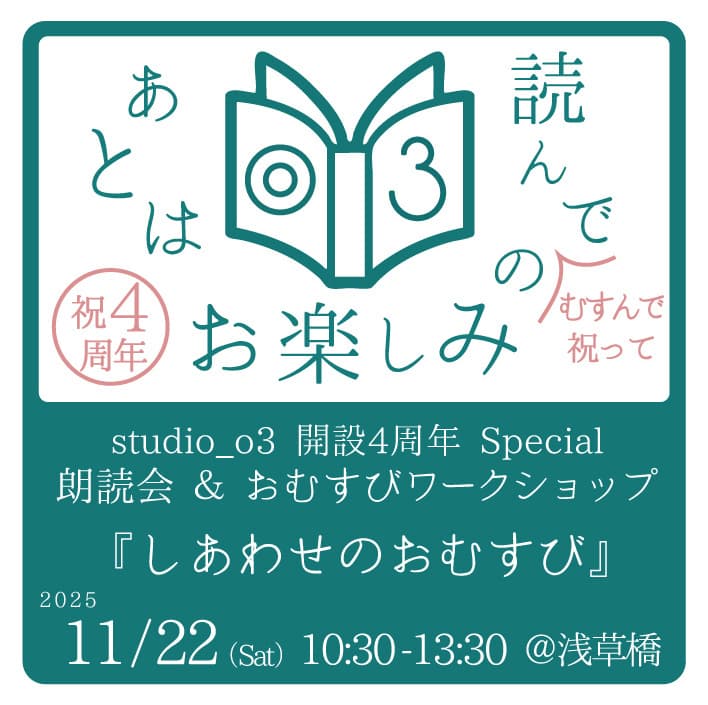 /studio_o3 開設4周年記念 朗読会&おむすびワークショップ《あとは読んでのお楽しみspecial》 |