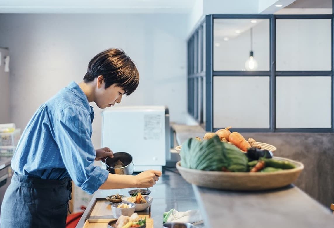現在はリノベーションした昭和の家を拠点に、料理教室・食空間演出などを手がけるクリエイティブスタジオ「eatoss」を主宰。